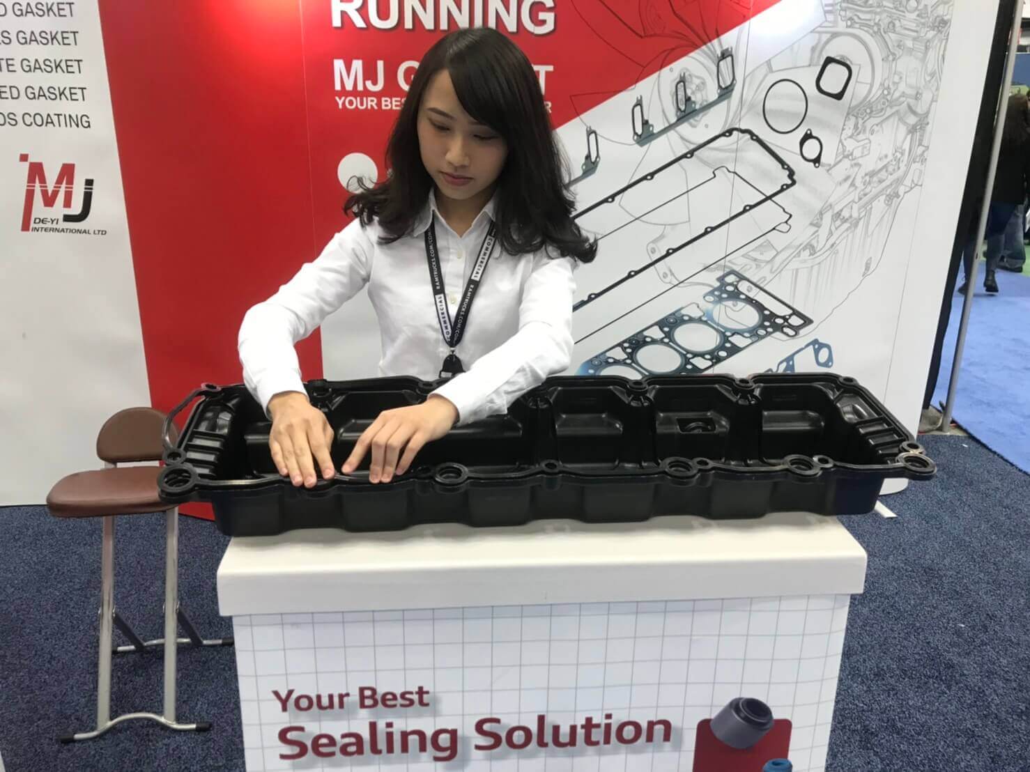 Obwohl die Menge, die am MJ-Stand vorbeikam, nicht vergleichbar zu sein schien mit dem letzten Jahr, stammte einer der Kunden, die wir getroffen haben, von einem berhmten Hydraulikunternehmen Das Unternehmen hat uns gebeten, fr seine Produkte bessere Hydraulikdichtungen zu entwickeln, die seit letztem Jahr unsere neu hinzugekommene Produktkategorie sind. Wir freuen uns ber diese neue Gelegenheit, mit ihnen zusammenzuarbeiten. In diesem Jahr hatte MJ einen echten Ventildeckel fr den Kunden, um die Ventildeckeldichtung selbst zu installieren. Whrend des Einbaus der Dichtung knnen Kunden sehen, wie unser Gummidichtungsstreifen auf den Ventildeckel passt. Es fllt auch nicht herunter wenn der Ventildeckel bei Motoren vertikal eingebaut wurde. Er wurde mit den Wlsten an der Dichtung befestigt. Bei Verwendung der Dichtungen von MJ ist das Problem des Auslaufens kein Problem mehr.